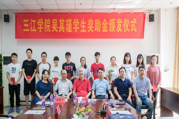 6月8日上午,我校在行政楼5422会议室举行2017年度“吴其瑾学生奖助金”颁发仪式。“吴其瑾学生奖助金”设立人、三江学院原副校长丁承憼,党委常务副书记、副校长周更生,学工部相关人员以及获得2017年度“吴其瑾学生奖助金”的11名学生出席了会议。会议由学工部副部长刘松伟主持。
