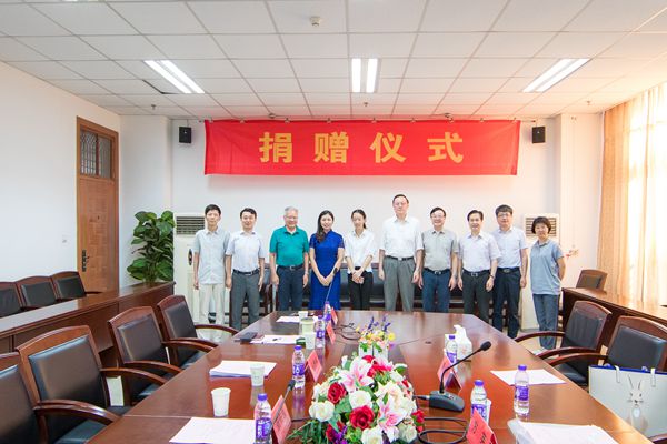笪佐领校长、党委丛懋林书记分别向南京巨百餐饮管理有限公司董事长方英女士(上图左四)、原国际交流与合作处黄克明处长(上图右五)颁发捐赠证书及纪念品