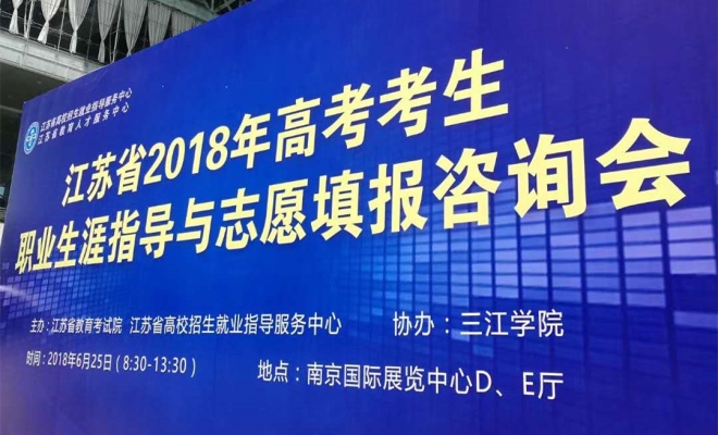 6月25日上午,江苏省教育考试院、江苏省高校招生就业指导服务中心主办,三江学院协办的江苏省2018年高考考生职业生涯指导与志愿填报咨询会在南京国际展览中心D、E厅举行。