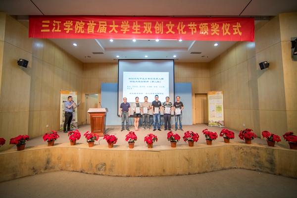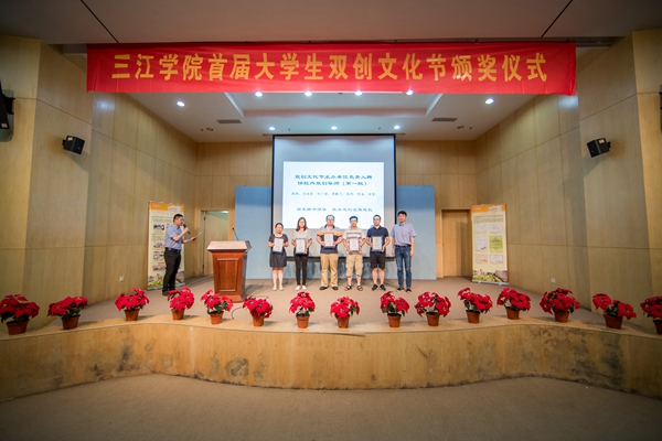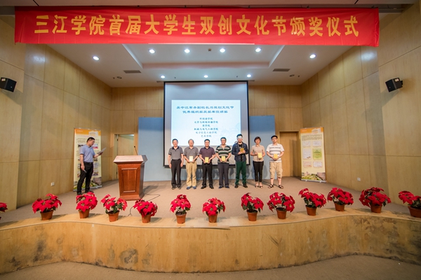 颁奖仪式由创新创业学院华沙院长主持。华沙院长首先介绍了出席颁奖仪式的嘉宾和领导并播放了首届大学生双创文化节视频短片。颁奖仪式先后颁发了科创系列竞赛获奖证书、校内外双创导师聘书、双创文化节优秀组织奖和三江学院第八届大学生创新创业大赛获奖证书。双创文化节主/承办单位负责人,周更生常务副书记、副校长,吴中江常务副校长,笪佐领校长分别为以上获奖学生代表颁奖及为受聘教师颁发聘书。期间,机械与电气工程学院康杰老师、艺术学院赵欣副院长、文化产业与旅游管理学院宋明露同学分别代表指导教师、承办单位和获奖学生上台发言。汤姆马克创始人李晓先生也通过视频短片代表双创导师对三江学院给予的支持与信任表达了感谢,李总表示汤姆马克将进一步开展双创训练营等活动,反哺学校,服务三江师生。