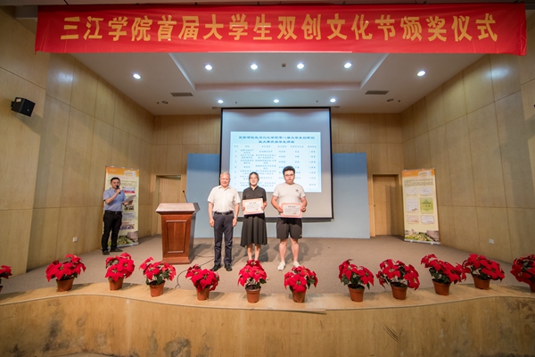 笪佐领校长为三江学院第八届大学生创新创业大赛获奖学生代表颁发证书