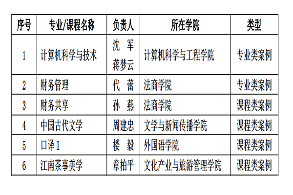 近日,江苏省高等学校教学管理研究会公布了江苏普通本科高校课程思政典型案例入选名单。我校申报的6个项目全部成功入选。入选项目涵盖计算机科学与技术、财务管理专业2个专业,以及《财务共享》《中国古代文学》《口译I》《江南茶事美学》4门课程。