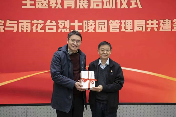 雨花台烈士纪念馆陈列展览处处长闻慧斌向三江学院赠送雨花英烈专题研究著作
