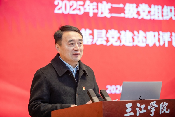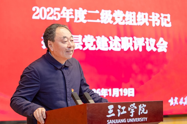1月19日,三江学院2025年度二级党组织书记抓基层党建述职评议会在学术报告厅举行。校党政领导班子成员,各党总支、直属党支部正、副书记,党群部门主要负责人参加会议。党委常务副书记、副校长周更生主持会议。
