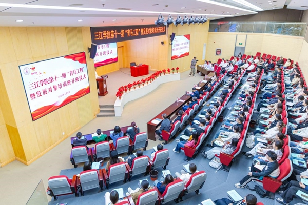 4月8日,三江学院第十一期“青马工程”暨发展对象培训班在学术报告厅开班。理事长、党委书记封超年参加开班仪式,并为第十一期青马学员讲授了第一课——《赓续红色基因,勇担青年使命》。校党委常务副书记、副校长、党校校长周更生主持开班仪式。党委办公室、党委组织部、马克思主义学院、校团委主要负责同志、第十一期“青马工程”培训班全体学员及第十期学员代表参加了开班仪式和培训。