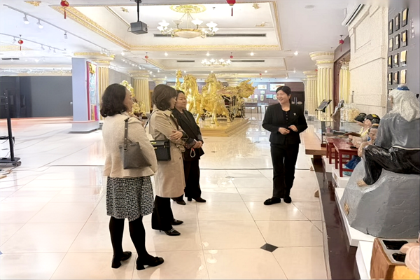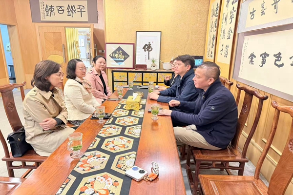南京金箔控股集团董事、金陵金箔集团董事长蒋炯,金陵金箔集团品牌总监李欣融,金箔集团宝玉公司总经理、南京金箔贴金技艺区级传承人翟士飞,金陵金箔集团团总支书记、门店事业部部长倪玲凤等陪同参观并座谈。
