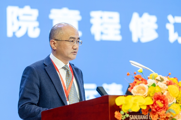 纪委书记、理事会秘书处秘书长李云涛作年度述职,作《三江学院章程》修订说明