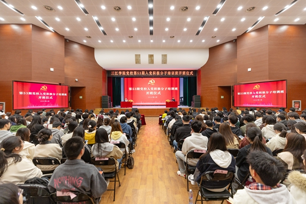 4月22日,三江学院第53期入党积极分子培训班开班仪式在铁心桥校区三江会堂举行,东校区、南校区、东山校区设分会场同步线上参加。校党委常务副书记、副校长、党校校长周更生出席开班式并讲授“第一课”。党委办公室、党委组织部、党校有关同志,与本期587名学员(含学生学员583人,教职工学员4人)共同参加了本次开班仪式。开班仪式由党委组织部副部长、党校副校长曹立明主持。