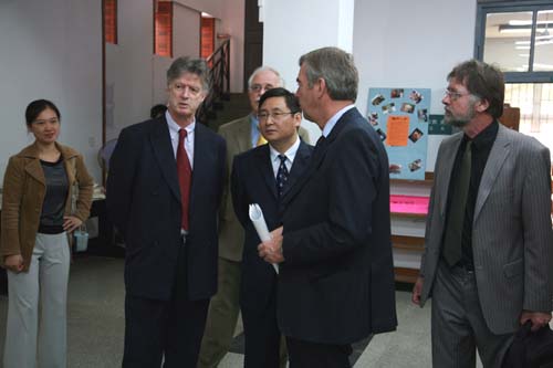 10月13日上午9时30分,荷兰赛克新大学新任校长Wim Boomkamp、公共关系处处长Rob Admiraal、社会科学系主任Wim Slingerland、国际处处长Chris van den Borne等一行四人访问我校。我校校长陈万年、国际合作与交流处处长、国际教育学院院长黄克明、教务处副处长郭红、计算机学院副院长佟振明、旅游系副主任张孝君、电气学院主任杨栋等热情接待了来宾。