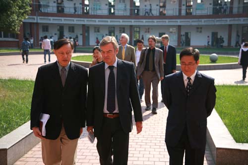 国际教育学院院长黄克明等带领客人参观校园