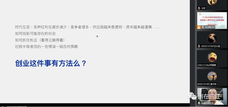 李文琪先生围绕“如何找到可能存在的机会、如何抓住机会、执行过程中易犯错误以及应对策略三方面内容展开,通过生动的案例引导创业者不仅要善于发现机会,更需要正确把握并果敢行动,将机会变成现实的结果。