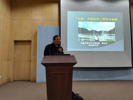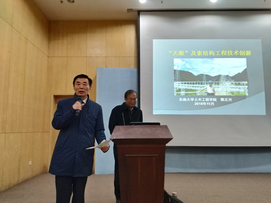 11月18日,为庆祝土木工程学院建院20周年,学院特邀请郭正兴教授(东南大学博士生导师,全国知名施工专家,装配制造技术创新平台首席科学家)在学术报告厅为我校师生们作了一场题为“FAST射电望远镜支承索网工程技术创新”的学术报告。三江学院副校长、土木工程学院院长黄安永教授、土木工程学院教师及百名学生聆听了学术报告。