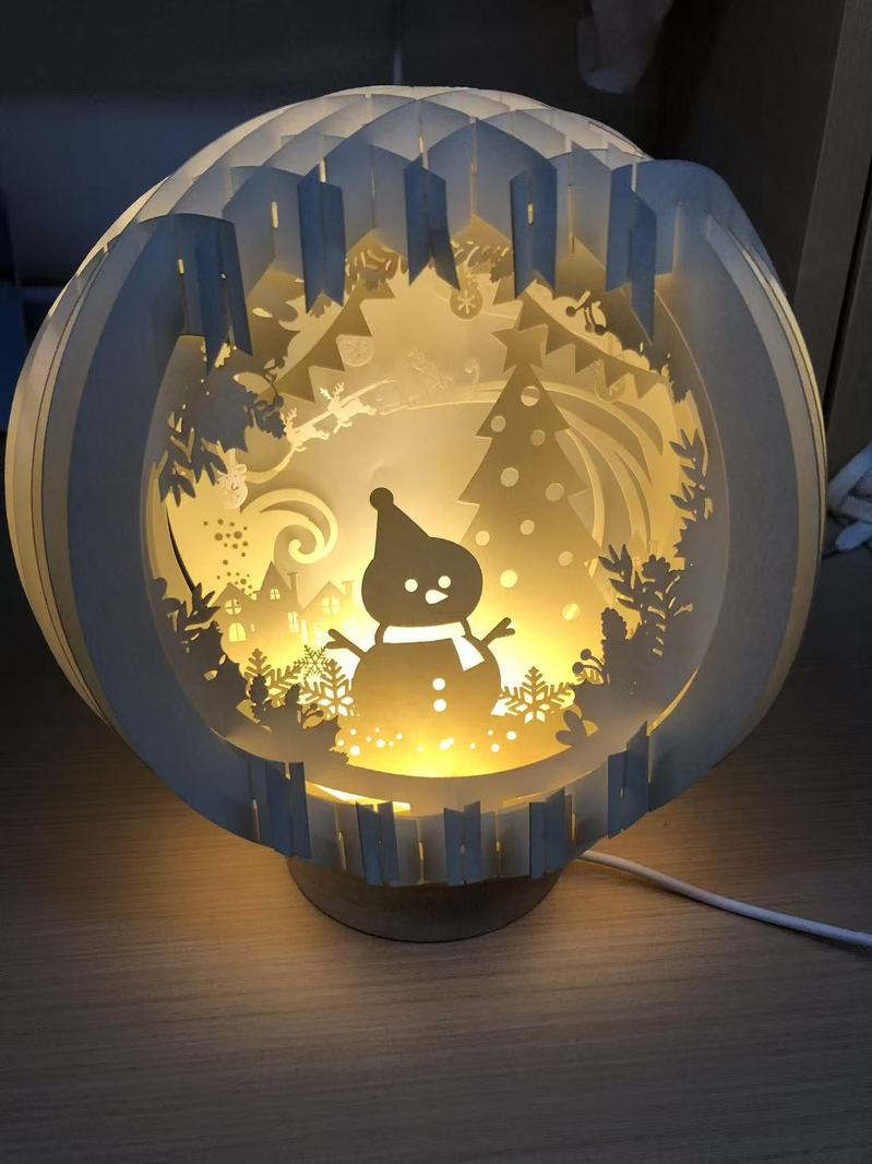 在纸雕灯制作区,同学们精心挑选图样,逐层进行剪裁、拼贴与固定。随着灯光亮起,纸张的层叠交错呈现出细腻的立体感与明暗变化,“冬日雪人”“池塘春色”等主题画面在暖光中生动展现,仿佛被赋予呼吸与生命。
