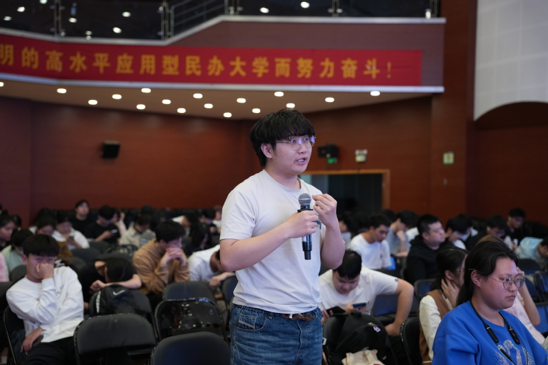 讲座特别设置了互动环节。针对一位来自设计专业的同学关于“AI是否会取代人力”的担忧,虞主任巧妙结合开场环节,提出“人机协同才是未来”的观点;对于工科学生关心的技术应用问题,他建议结合专业优势,在边缘计算、智能硬件等领域寻找突破口。现场讨论热烈,同学们纷纷表示收获颇丰。