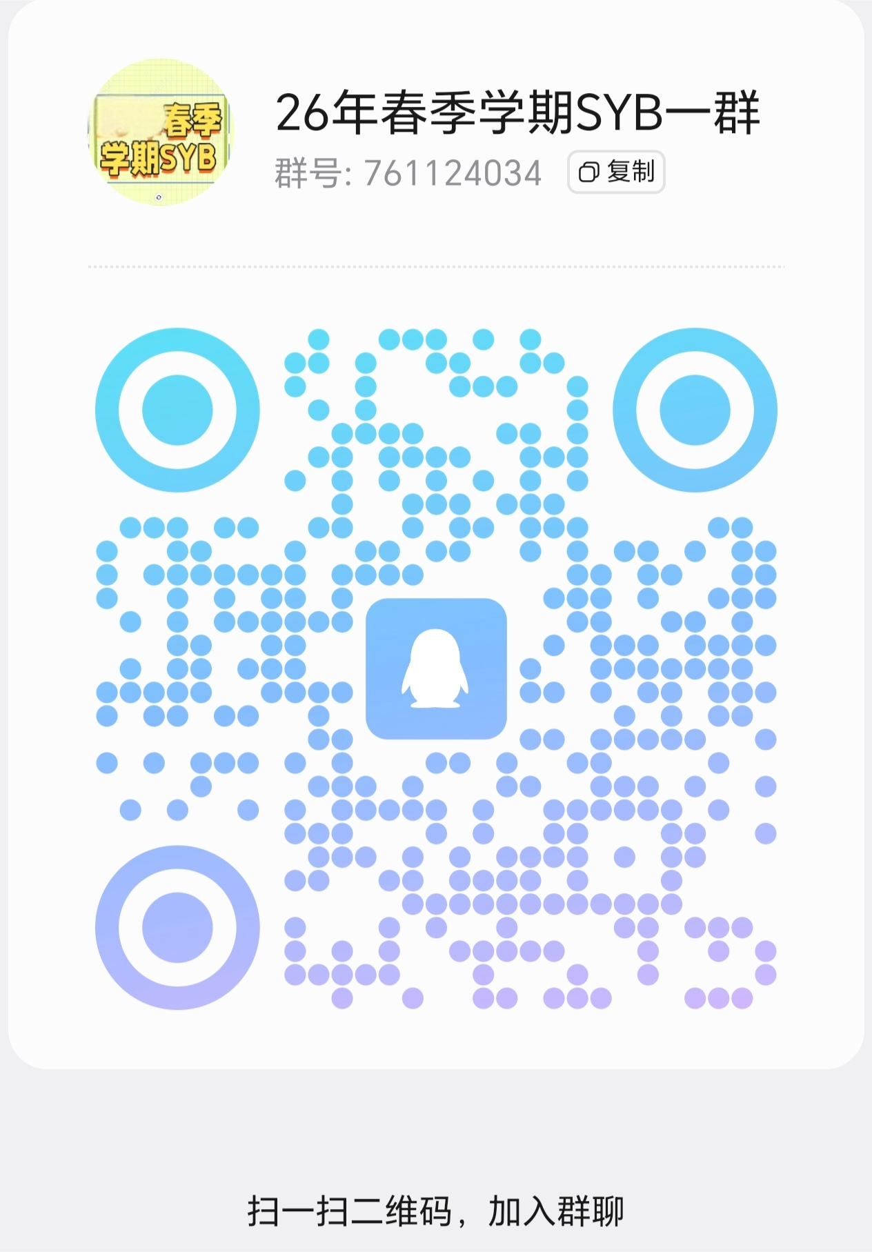 2.报名SYB加入QQ群,群(761124034)