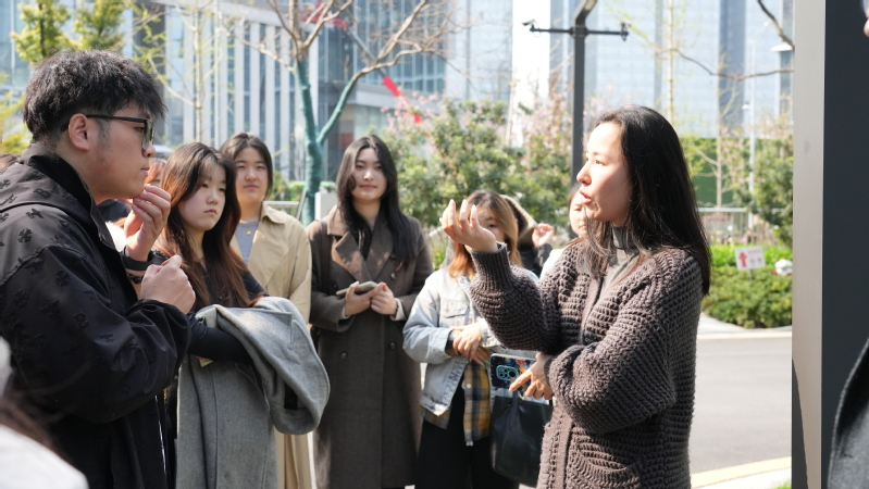 在专业讲解员的引导下,参访师生首先走进园区核心区域,依次参观办公空间、文化展示区、公益项目展区及共享办公社区。讲解员围绕企业发展历程、业务布局、建筑设计理念与创新实践进行细致讲解,让大家直观感受互联网企业开放协同、创新驱动的发展氛围,深刻理解数字经济时代企业的创新逻辑与发展路径。