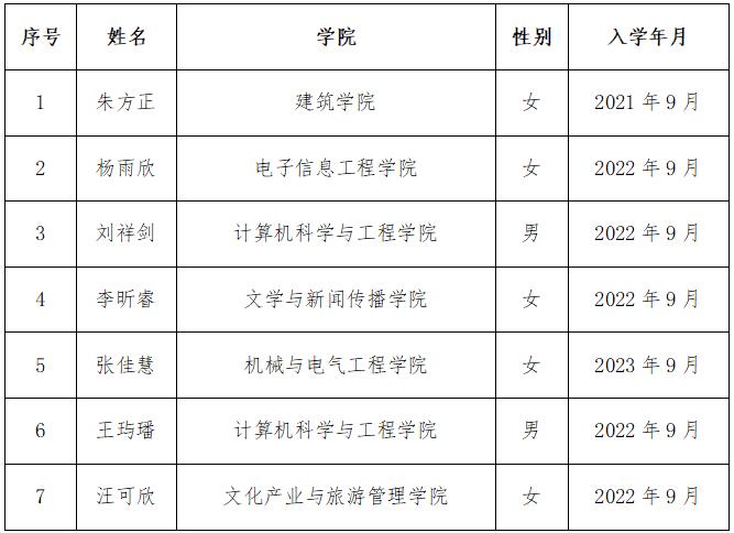 根据国家奖学金评比条件和相关评比通知要求,经学院推荐,学生发展与服务中心初评,共有14位候选人参加答辩,本着公平、公正、公开的原则,经评审小组评比,共评选出7名同学为我校2025年国家奖学金拟推荐对象,现对7名拟推荐学生予以公示。