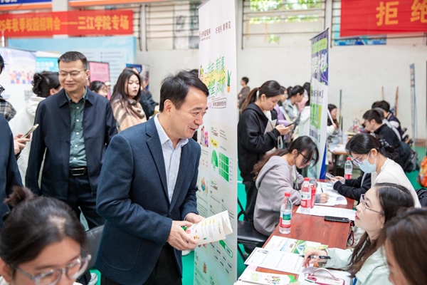 10月23日,“职引新动能 联动助启航”江苏省2026届高校毕业生秋季招聘月暨三江学院2026届毕业生秋季校园招聘会在铁心桥校区体育馆举办。理事长、党委书记封超年,党委常务副书记、副校长周更生,有关职能部门负责人、二级学院负责人、专业课教师、辅导员等到招聘会现场与用人单位和应聘毕业生交流,了解聘用需求并掌握学生应聘情况。本次招聘会规模大、覆盖广、服务精准,吸引了我校数千名毕业生踊跃参与。